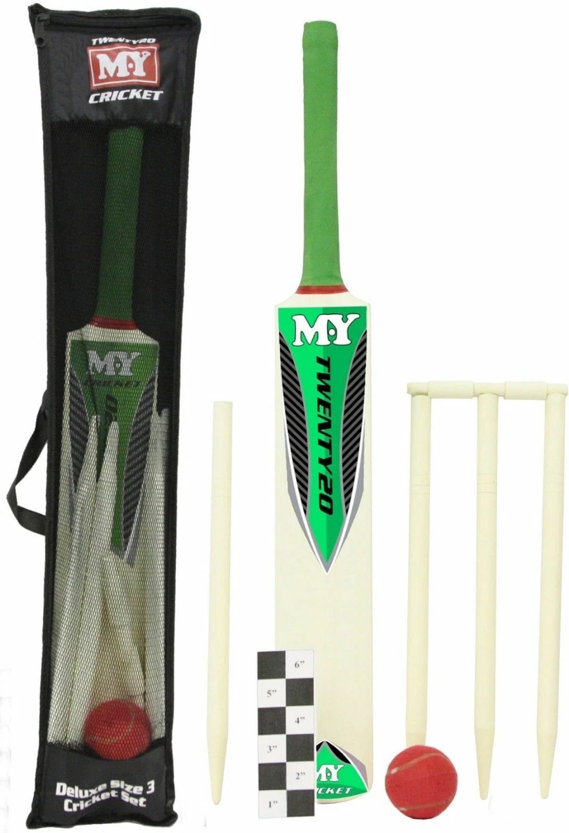 Childrens Medium Size 5 Cricket Set Wooden Bat Ball Stumps Bails Garden Beach Ebay